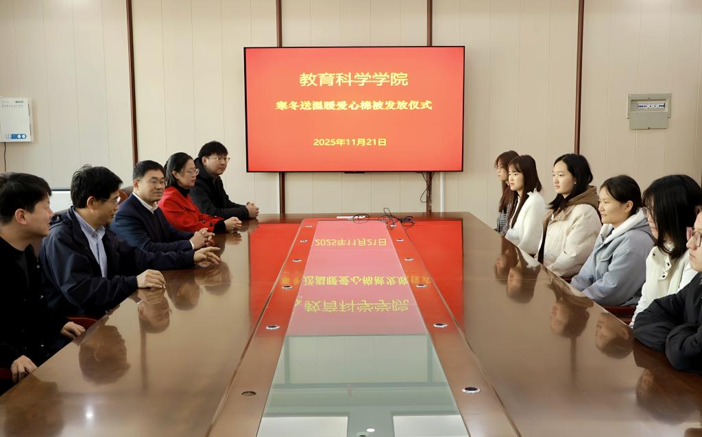 时间:2025-11-23 10:55:06 来源:教科院新闻宣传中心 作者:杨素云 阅读: 次为切实保障学生冬日温暖,传递学校对学子的关怀与期许,11月21日,999策略白菜手机论坛开展“爱心棉被”发放仪式。999策略白菜手机论坛党委书记房加帅、党委副书记缑星、副院长郭勇、副院长孙天义、专职组织员田园、专职辅导员提格尼尔、专职辅导员刘然然以及25级学生代表参加此次仪式。