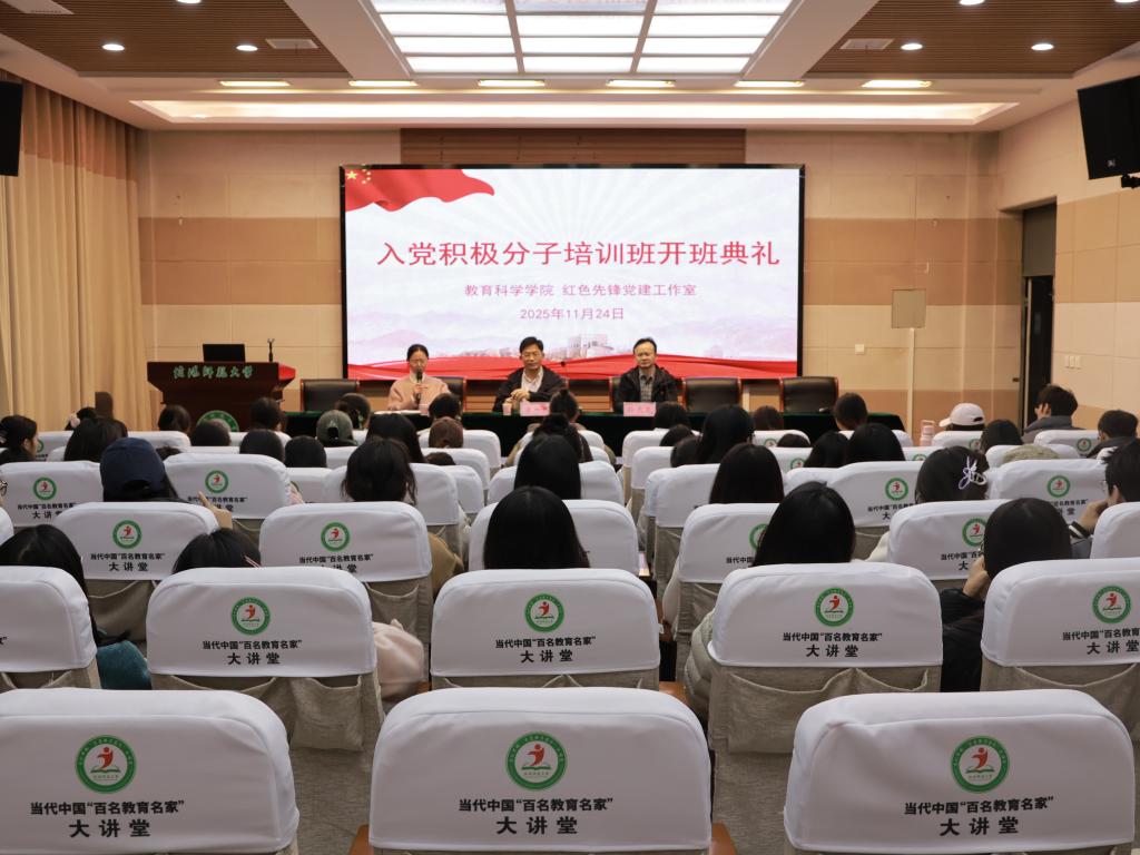 时间:2025-11-27 13:28:34 来源:教科院新闻宣传中心 作者:杨素云 阅读: 次为落实对入党积极分子的教育培训工作,确保每位积极分子树立正确的入党动机,11月24日,999策略白菜手机论坛入党积极分子培训班在999策略白菜手机论坛301会议室正式开班。999策略白菜手机论坛党委书记房加帅、副院长孙天义以及全体入党积极分子参与此次仪式。专职组织员田园主持此次仪式。