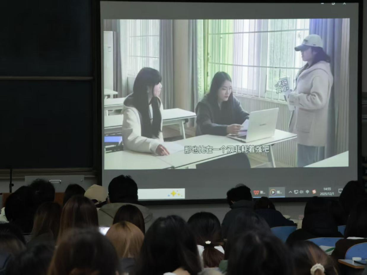 心理学二班分为七组以Vlog形式展示,比赛顺序由各小组组长抽签决定,七支队伍围绕青年心理与行为议题依次展示,内容涵盖多个备受关注的热点:“大学生内耗与焦虑”议题中,同学们深入分析指出,内耗源于对未来的不确定感与自我怀疑,而正念调节能有效帮助个体减少心理消耗;以“考研热”为主题的小组使跟风心理得到细致解读,指出这种行为既浪费个人精力,也加剧了人力资源市场的供需错配;“社会竞争下过分内卷引发的社交疲倦”议题中,揭示了高强度竞争对青年人际关系的负面影响。各小组均将专业知识与社会现实紧密结合,生动展现了心理学服务青年成长的实践价值。